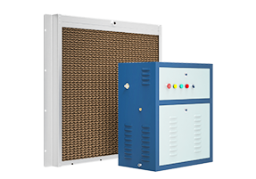 江蘇博名空調(diào)設(shè)備有限公司——經(jīng)過(guò)電磁閥的清潔自來(lái)水通過(guò)供水管路送到濕膜頂部布水器,水在重力作用下沿濕膜表面往下流,從而將濕膜表面潤(rùn)濕,流到接水盤中的水通過(guò)排水彎管排到下水管道中,即水不循環(huán)使用。當(dāng)熱空氣穿過(guò)潮濕的濕膜時(shí),其濕度增加,溫度下降,這加濕過(guò)程為等焓加濕過(guò)程。在這一過(guò)程中,濕膜上的部分水被蒸發(fā)掉,但不消耗額外的能源。